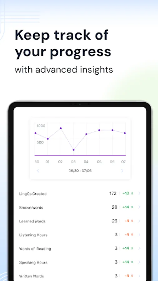 ✅ Advanced Progress Tracking: Monitor your listening, reading, study time, and vocabulary growth.