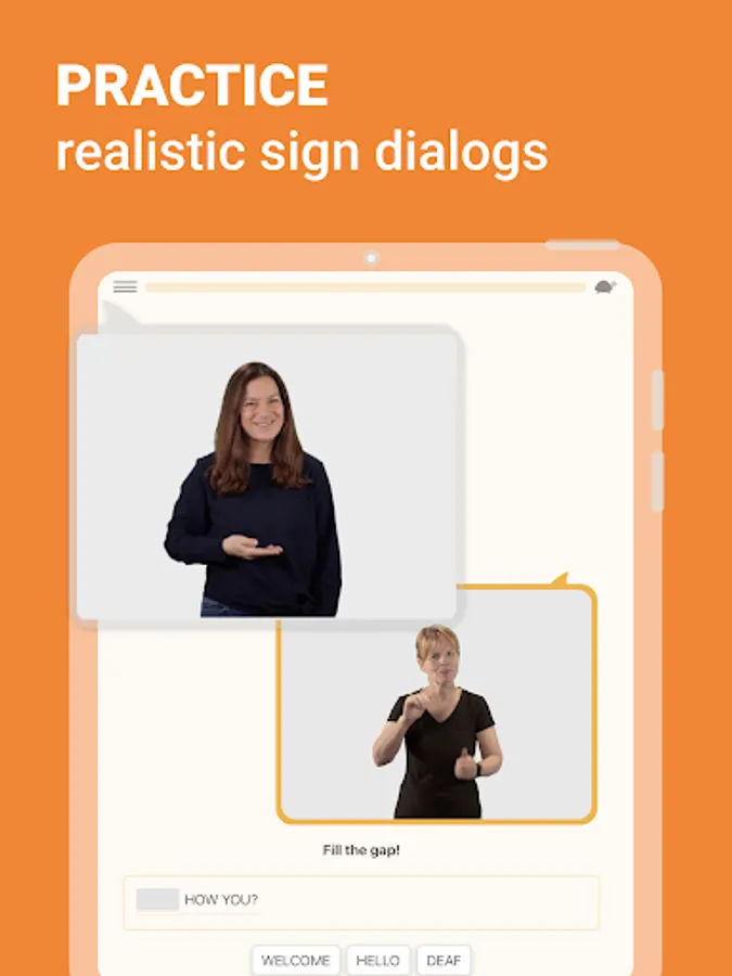 Immerse yourself in American Sign Language learning hands-on through interactive and useful dialogs that get you conversational fast.
