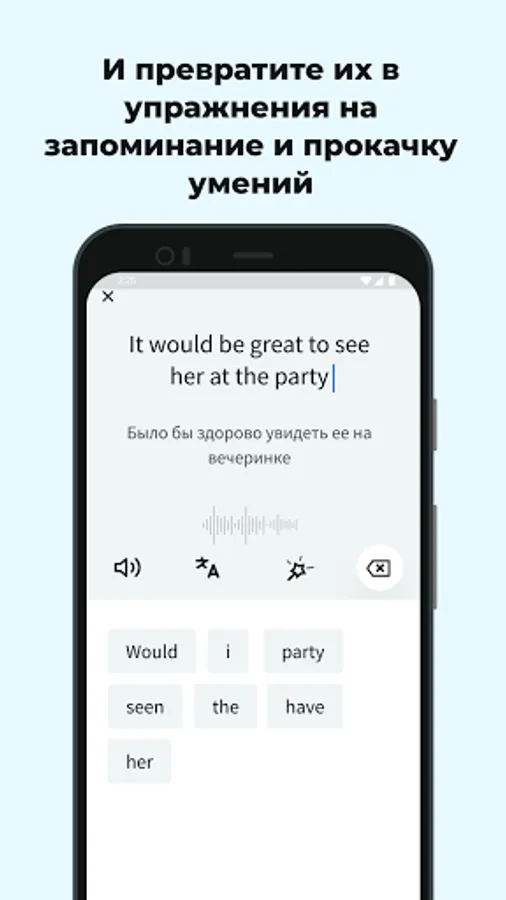 With us you learn a foreign language using only the material that is interesting to you. Choosing from the available types of workouts those that suit you best. And by doing it anywhere.