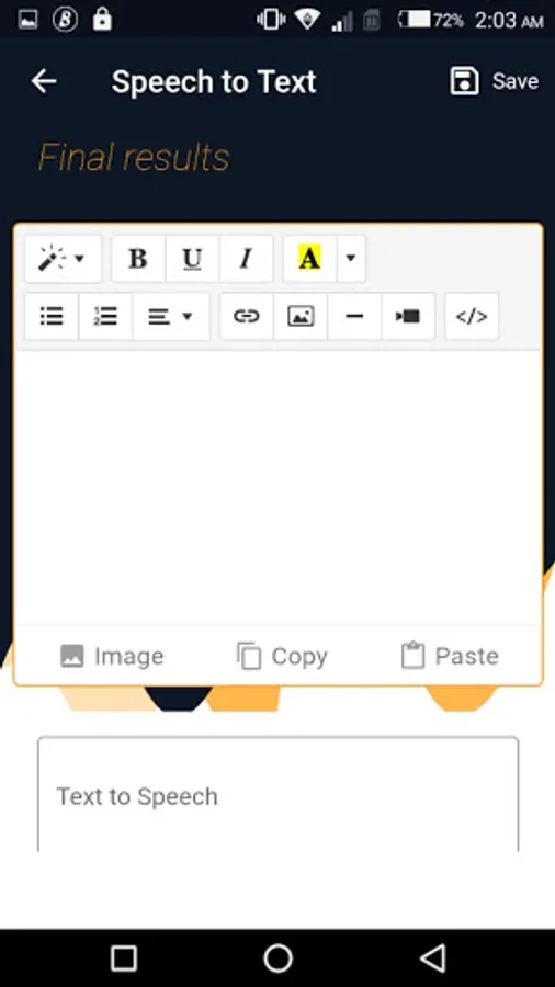 - Convert a speech bit by bit into text with customizable field to customize the resulting text and save it as pdf file. This helps in case you want to type something in that you can just dictate the content.