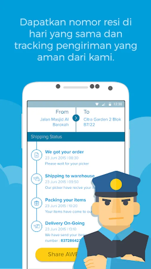 We guarantee that every delivery order you will get a receipt number on the same day. Without the need to send a shipping agent, you can not only check receipts but also real-time update notifications about the status of your shipments directly on your cellphone.