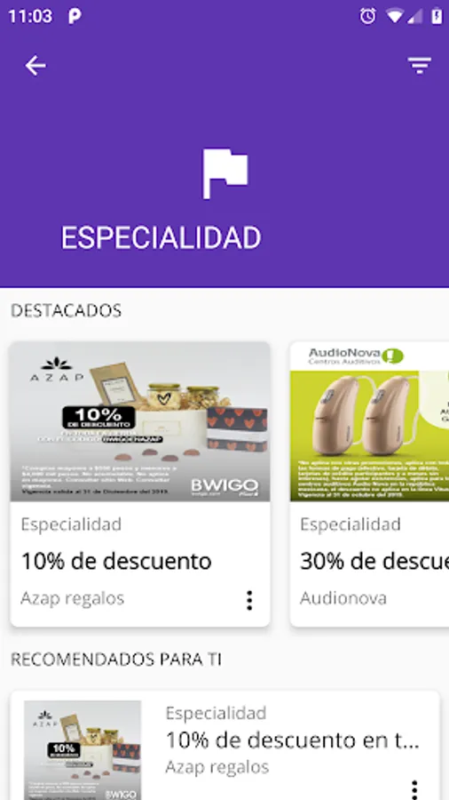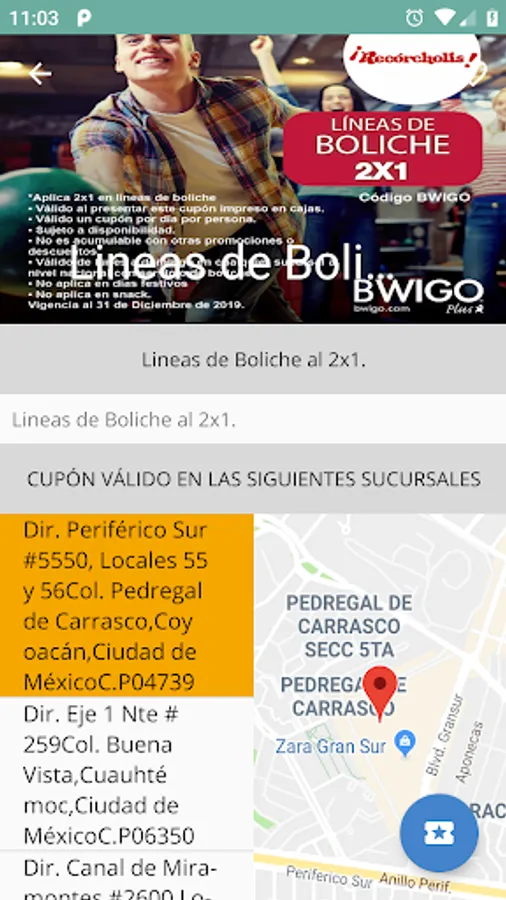 In BWIGO mobile you can find 2x1 discounts, free tickets, free movie tickets, courtesies in restaurant categories, entertainment, health and beauty, specialty stores, etc.