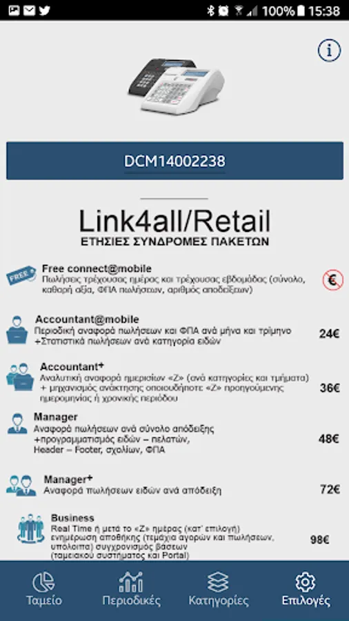 RBS, through Cloud Portal Link4All, the world's only online Cash Port Interface Portal, enables you to connect to your Cash Machine using the "Link4All mobile" * * application without any charge, and keep track of real-time sales of your store on the current day as well as sales of the previous 6 days (Available on the Ap store and Play store).