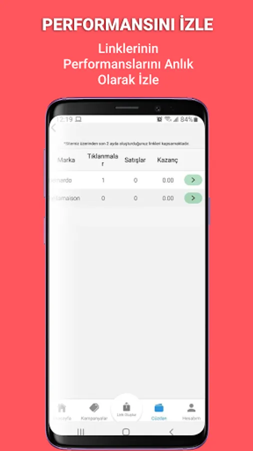 You can instantly track the number of clicks, purchases and earnings from your links from the Wallet and My Performance Information fields.