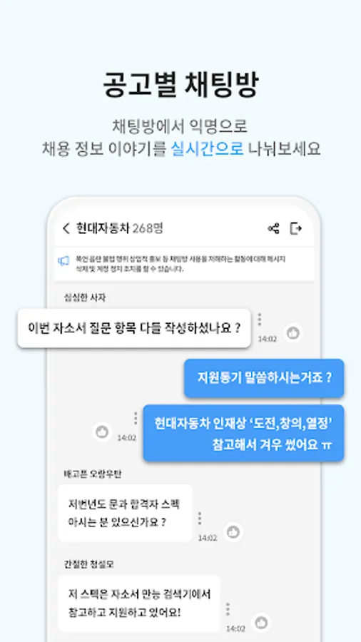 - Communicate directly with the person in charge of the company about recruitment and employment in real time, and receive company news.
