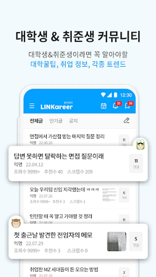 An anonymous community where new articles such as college life, job preparation, and certification information are posted every day,