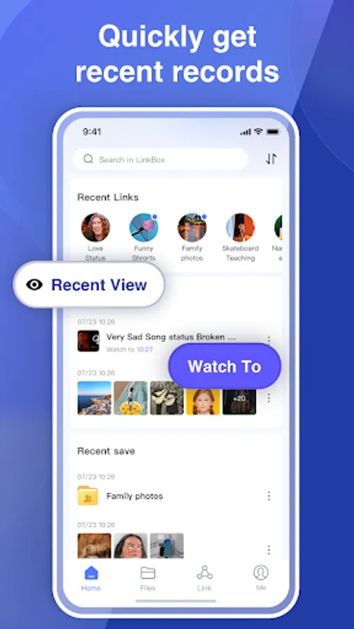 Support uploading files such as videos and photos from mobile phones to LinkBox cloud storage. Your phone storage space will be released to the greatest extent possible.