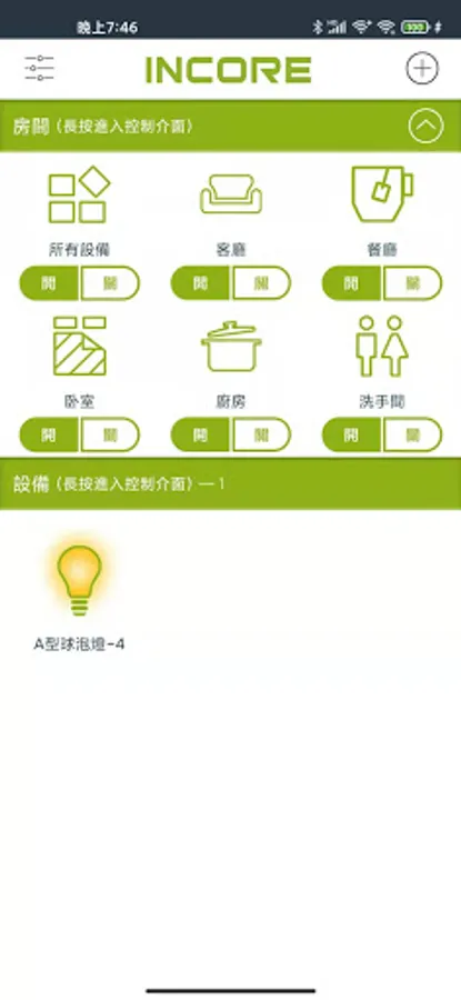 INCORE is an application for mesh networking lamps, with convenient and concise control; users can customize the page style (normal white, warm white, color) according to the type of lamp; the application can support about 200 lamps for networking, and the lamps have relays Transmission function, and group function; the use of a paired remote control combined with the software can make the control more convenient