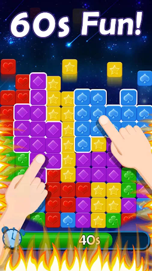 ✓ Just tap two or more blocks of the same color on 1010! board.