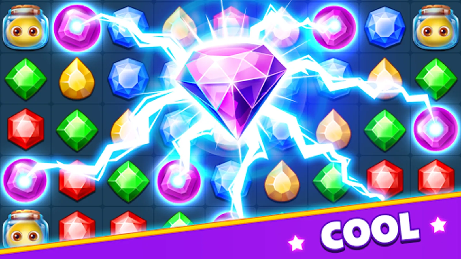 β Match 4 jewels to create special lightning jewels. Lightning jewels can make a blast to destroy all jewels in a row or column.