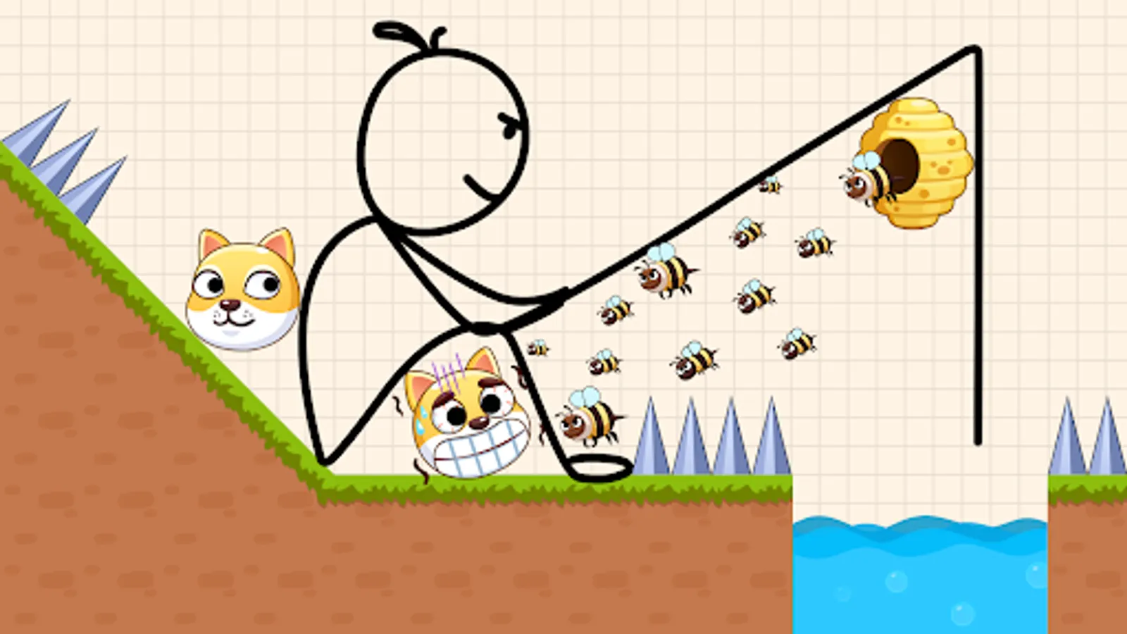 Save the Dog is a simple but addictive line-drawing physics puzzle game. Just draw lines with your fingers on the screen to create walls that protect the dog from attacks by bees in the hive! 🐾