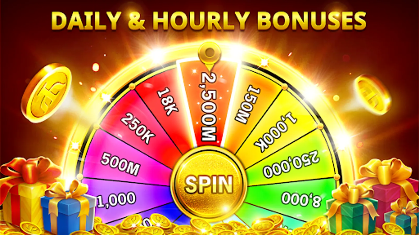★ Daily bonus wheel and hourly Bonuses: continuous free chips!