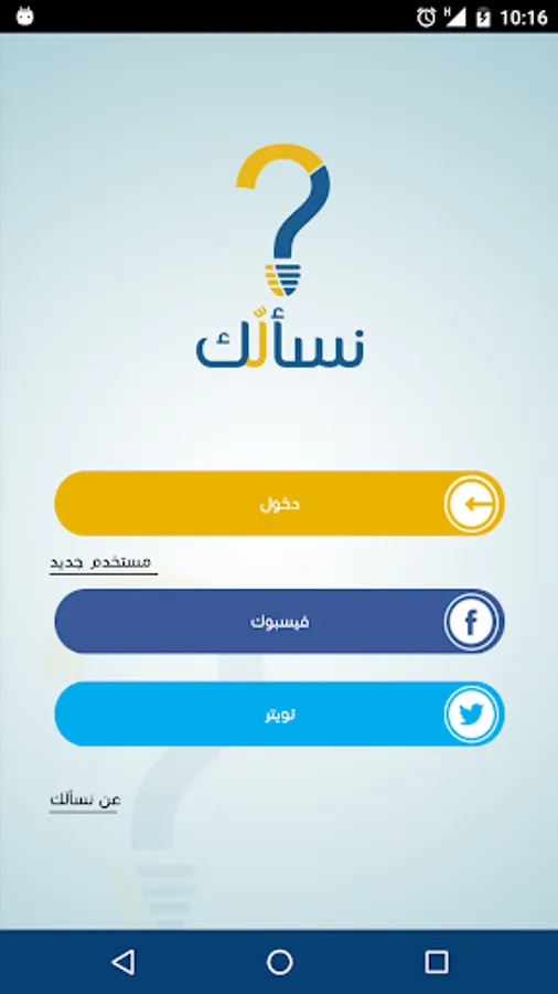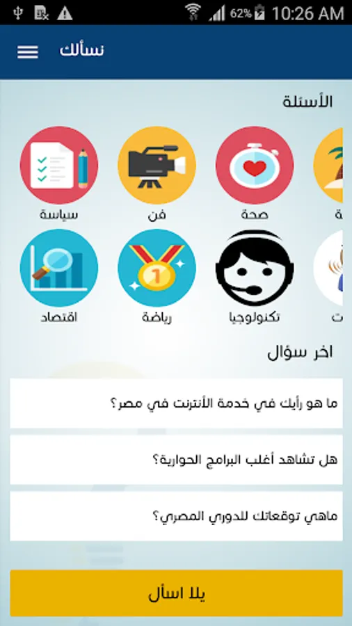- نسألك هو تطبيق للتليفون المحمول يهدف إلى ربط المستخدمين بصورة تساعدهم على توجيه أسئلة و الحصول على إجابات لها لتمكينهم من التعرف على اَراء الأخرين فى موضوعات تهمهم , كما يعمل تطبيق " نسألك "على توسيع نطاق المشاركة فى القضايا المجتمعية المختلفة، كما يعمل " نسألك علي ربط المستخدمين ببعض دون افصاح عن بيانات اى مستخدم.