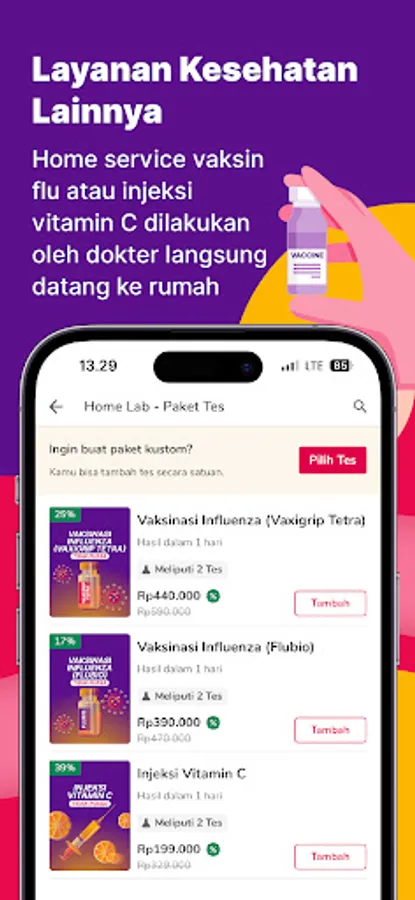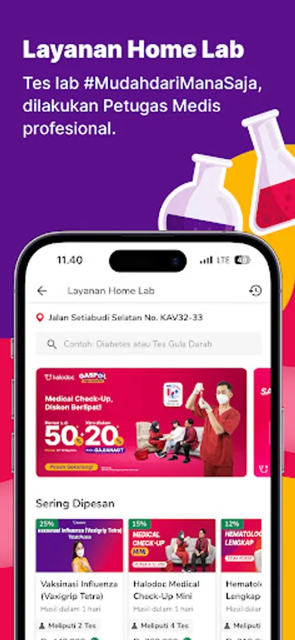 Halodoc memberikan kemudahan layanan kesehatan di rumah kamu seperti vaksin flu, injeksi vitamin c, medical check up, cek kolesterol dan lain sebagainya. Tidak perlu keluar rumah, berbagai kebutuhan tes kesehatan bisa dilakukan di rumah!