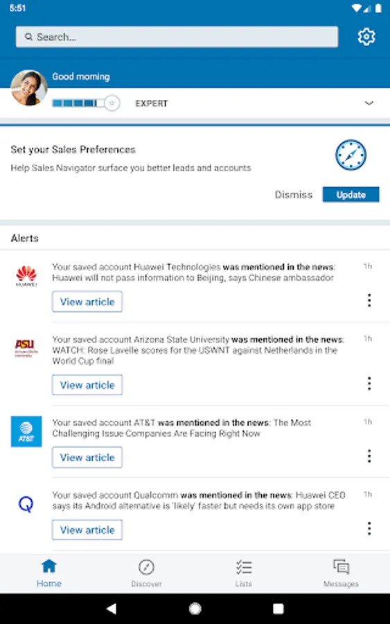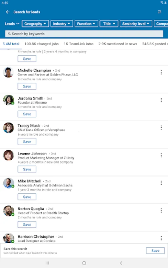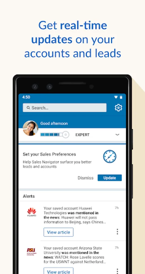 Stay up to date with your accounts and leads with LinkedIn Sales Navigator on your Android device, wherever you are.