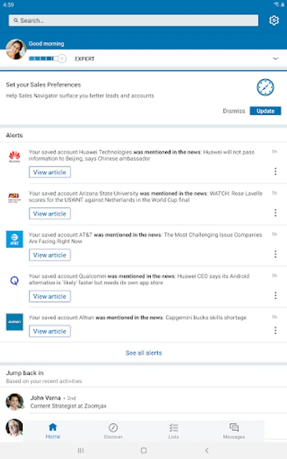 - Discover new accounts and leads with daily recommendations, wherever you are