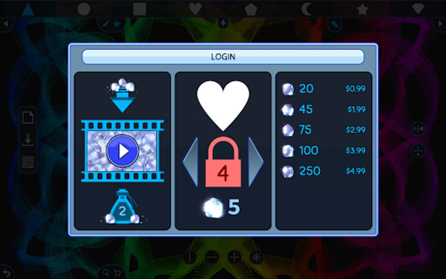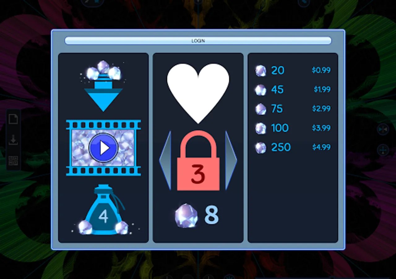 * Shop view for browsing locked items and earning or purchasing gems to unlock them.