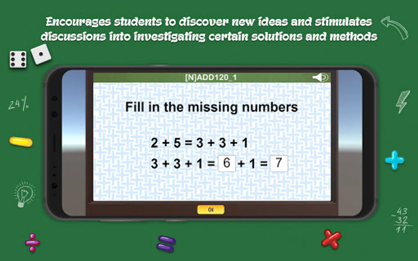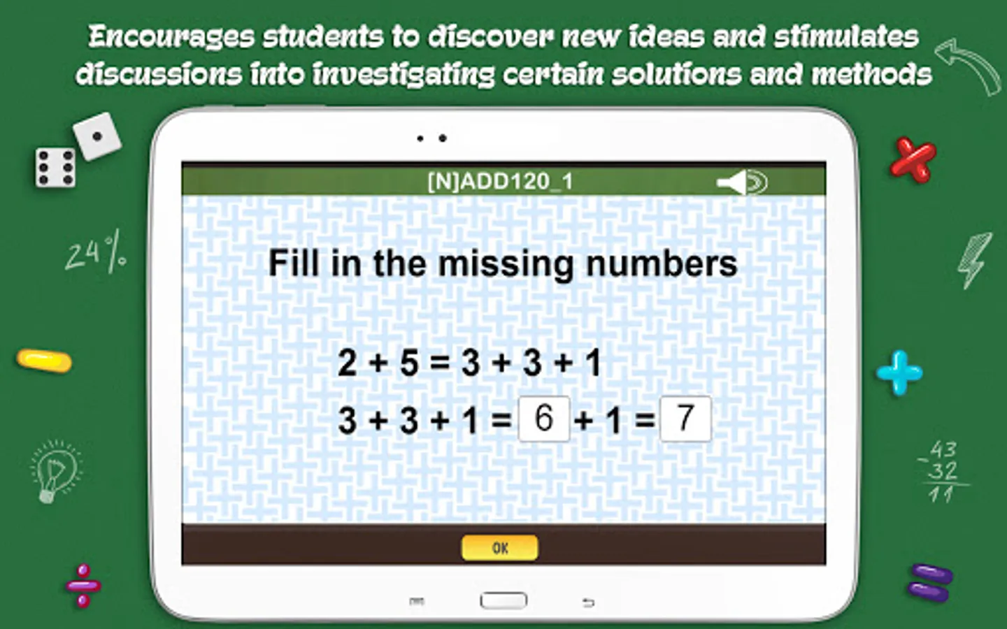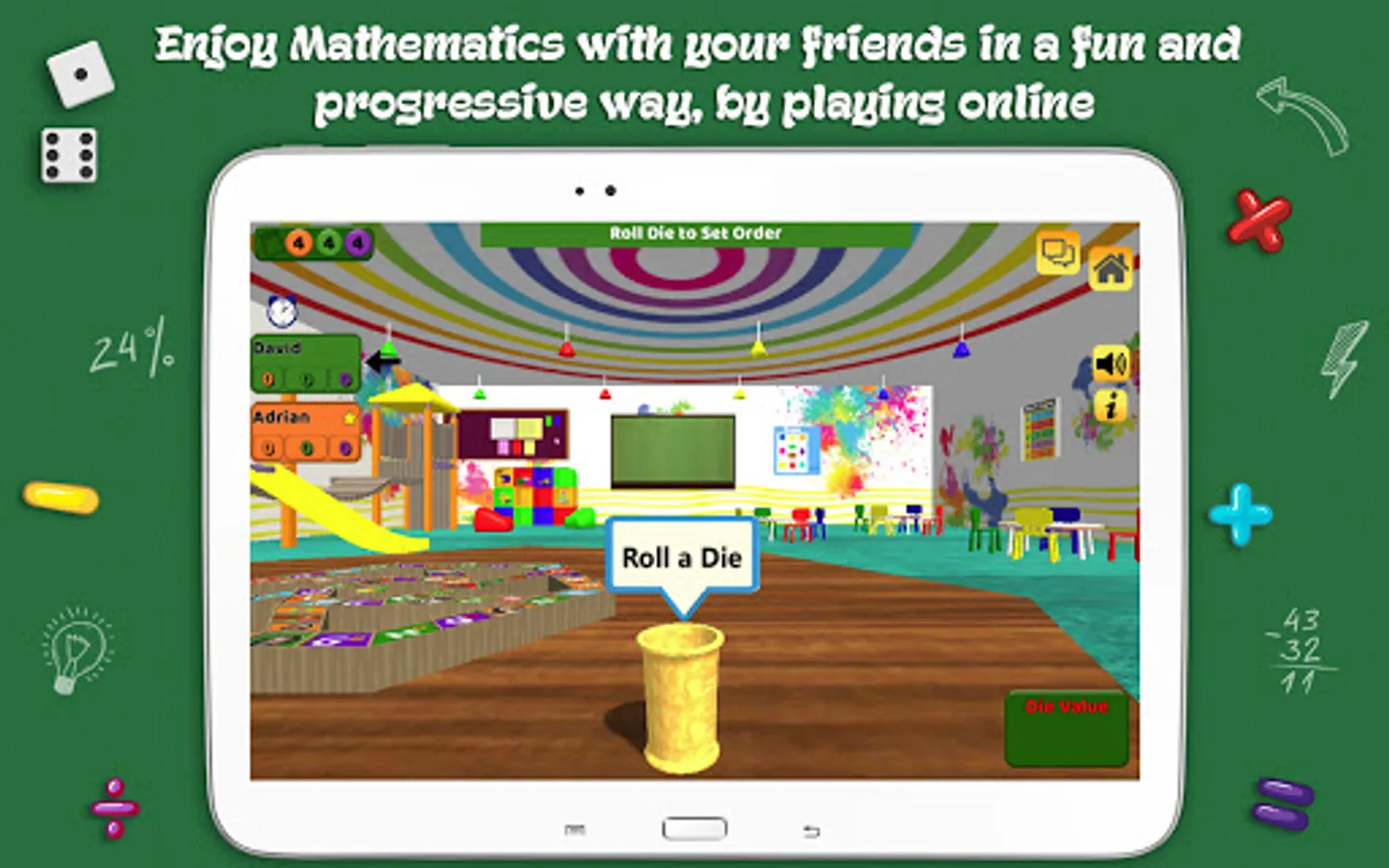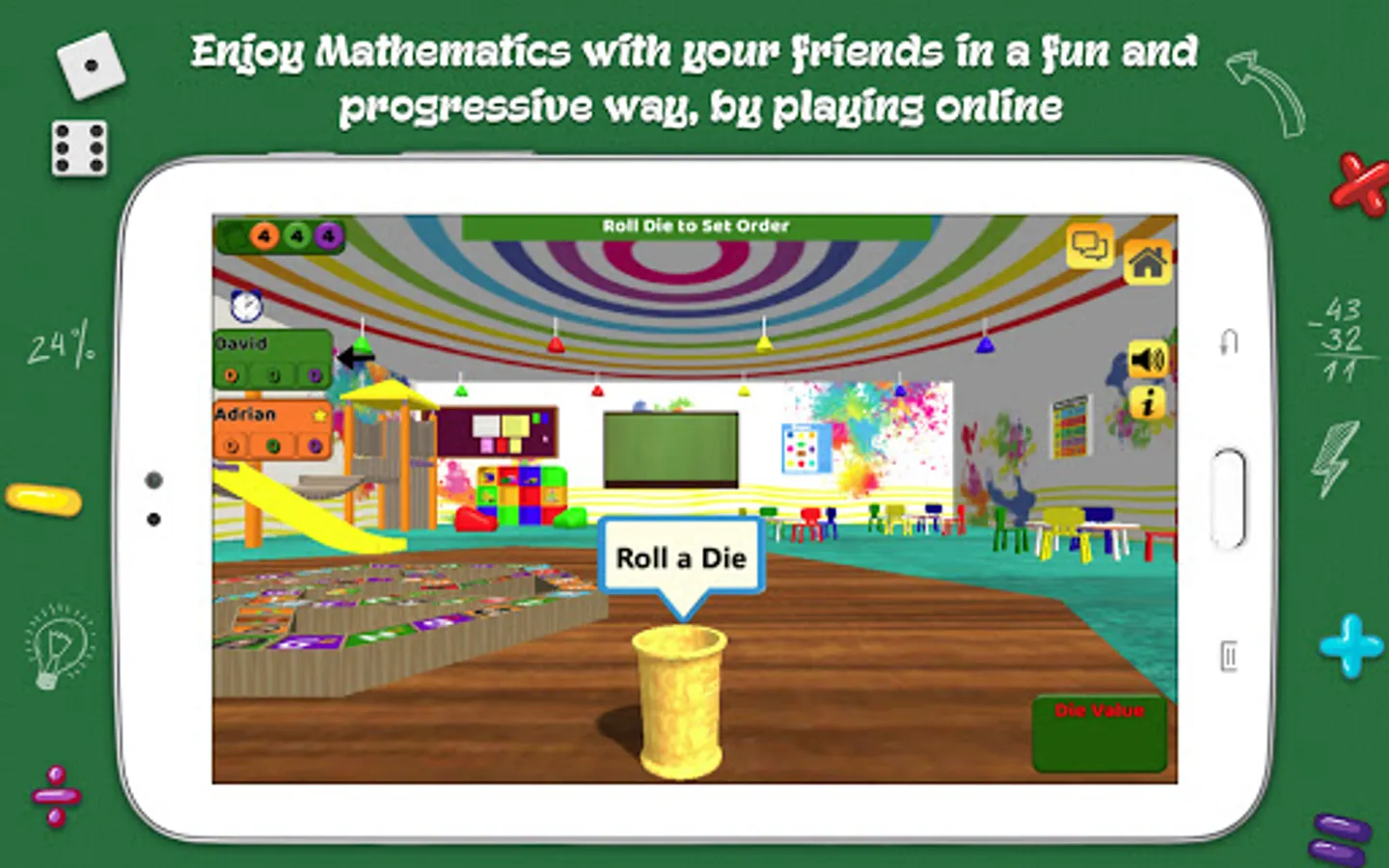*The “Pass & Play” mode brings advance and weaker students together while playing the same game, allowing for the stronger students to become “teachers” and the weaker students to build up their math skills.