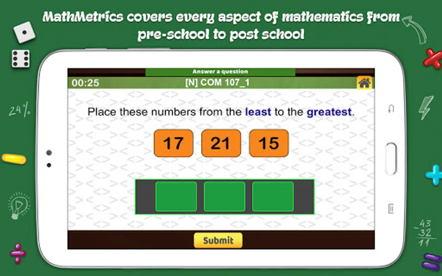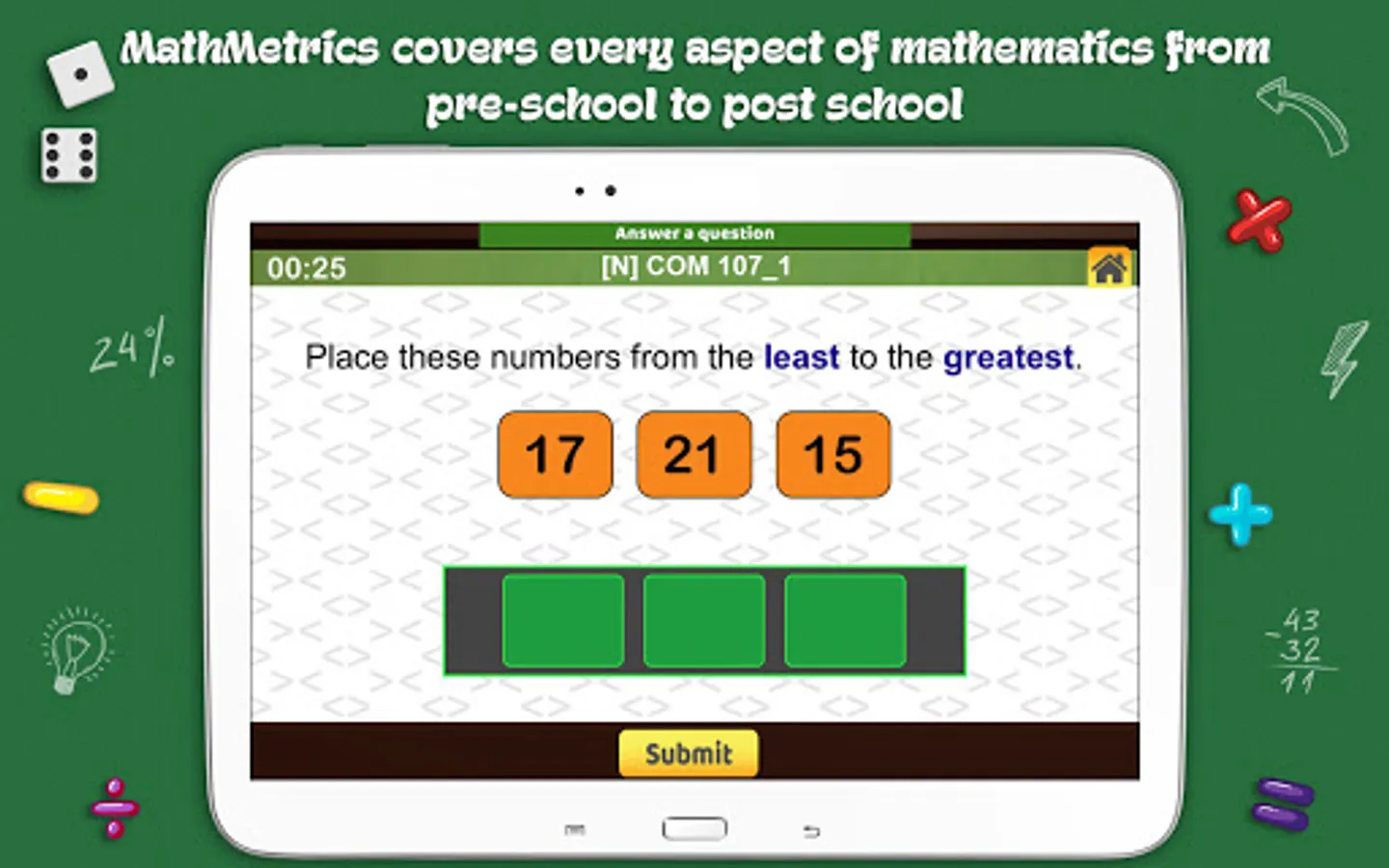 *MathMetrics is portable over different devices, so can be used when you need to kill time (e.g. while waiting for a restaurant table, etc.)