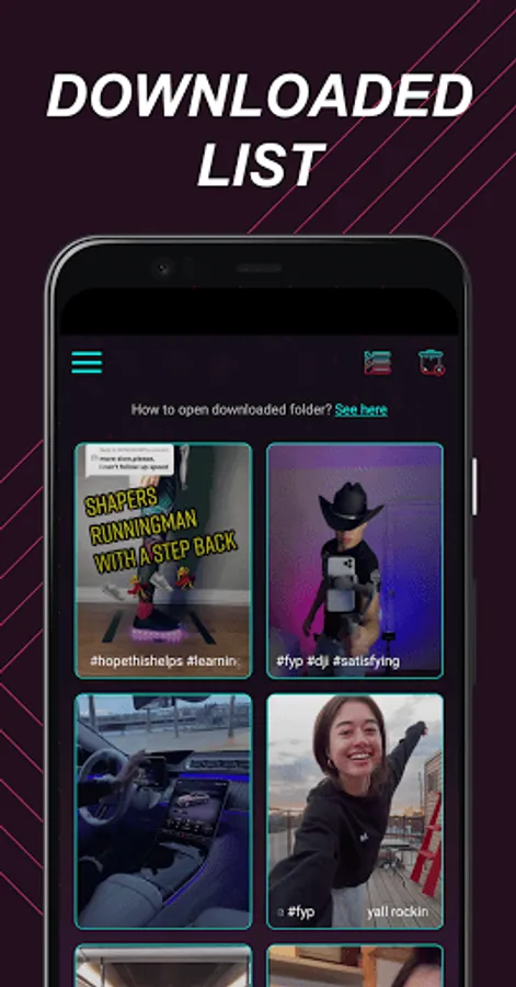 - Manage downloaded TikTok video inside app, and will able to see from that list.