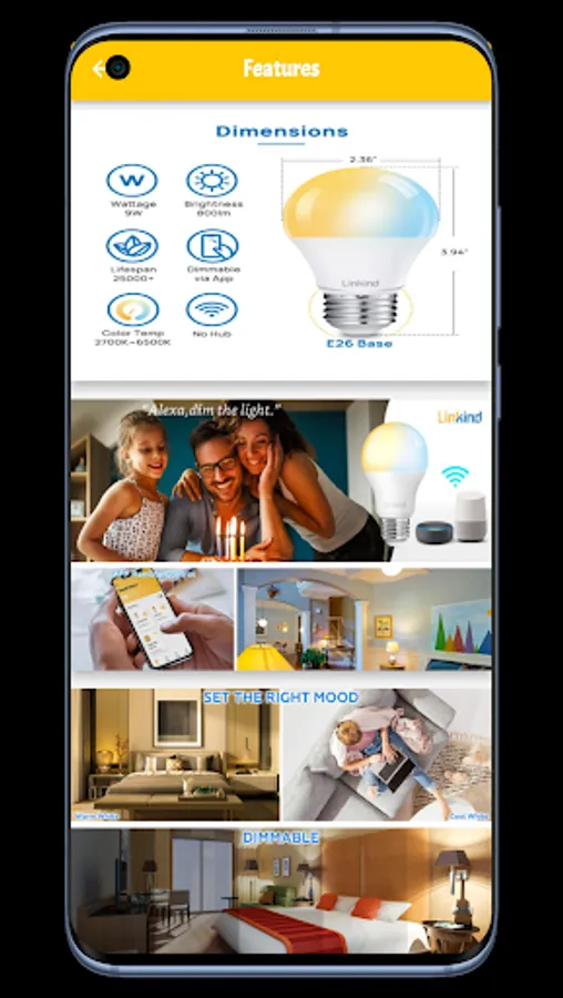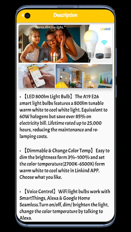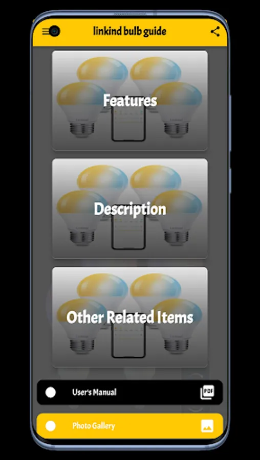 In linkind bulb guide app we supported many sections of content that will let you now more information about linkind bulb guide