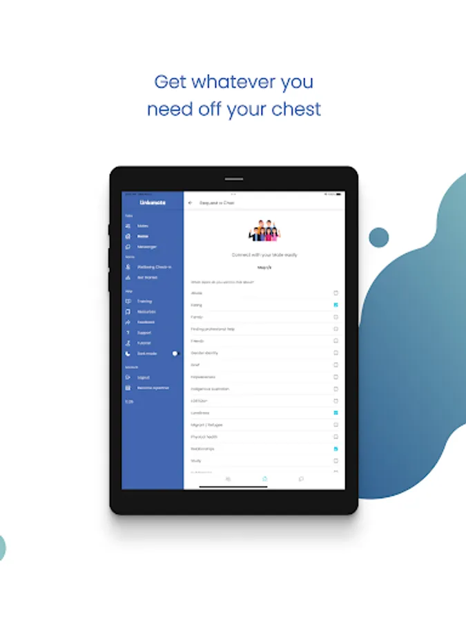 With Linkmate, you can choose whatever topic you want support with and whoever you want to talk to about it. There’s no shame in struggling and everyone needs help sometimes. Your Mates can offer a listening ear and help you figure things out. Your problems are important and you deserve a safe place to talk about them. You can talk to your Mate about a range of different things - whether it’s relationship issues, losing a loved one, identity or even if you just want to chat.