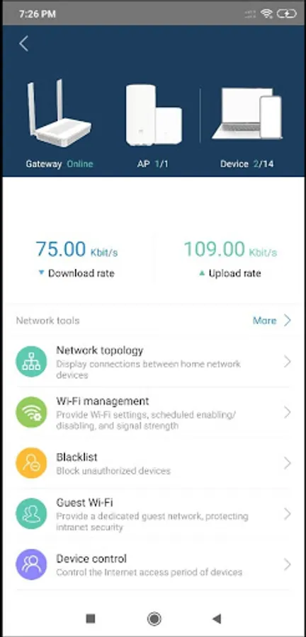 2. Blacklist, Wi-Fi settings, Parental control, and guest network management, providing refined control over your wired and wireless networks and connected devices