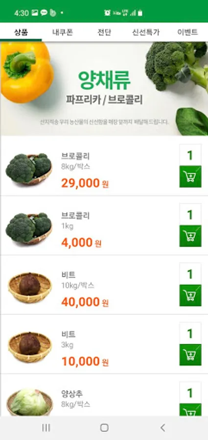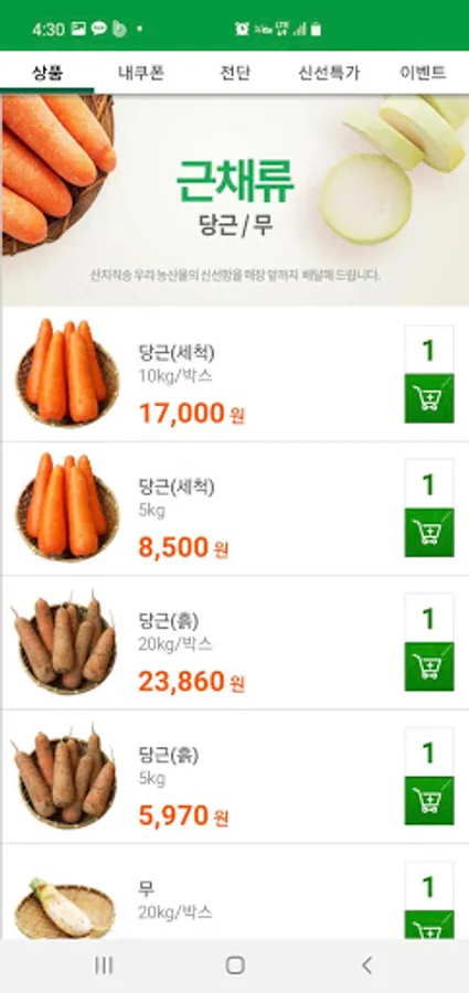 Food order delivery app that allows you to quickly and safely receive our fresh produce from the production area! Even if you don't go shopping at Garak Market, you can get reasonable prices and high-quality agricultural products at the store.