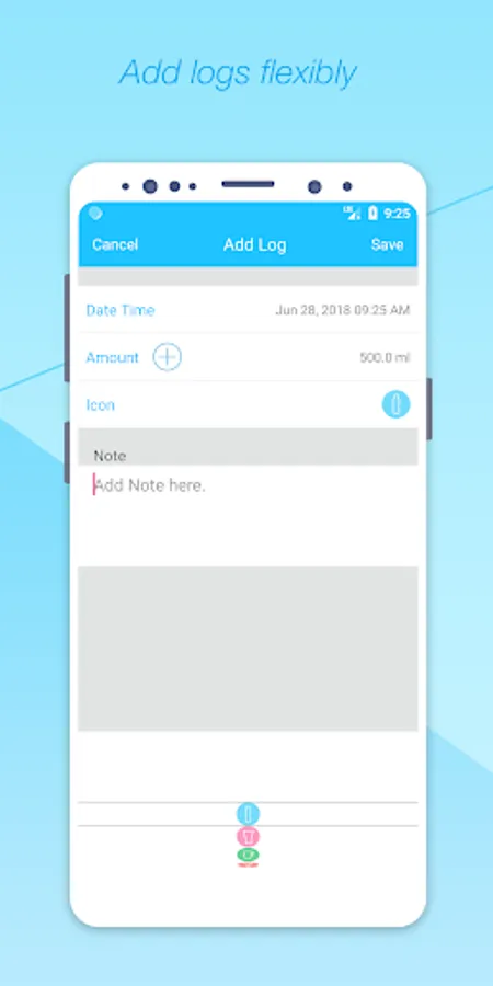 ⁃ Keeps daily water drinking logs.