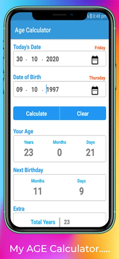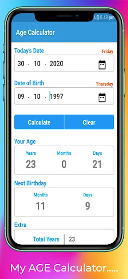 Age Calculator App, is absolutely free for you. No charges, no costs, and all features are also free. This easy-to-use app helps you calculate your age with no strings attached. Download now and enjoy accurate age calculation without spending a penny.
