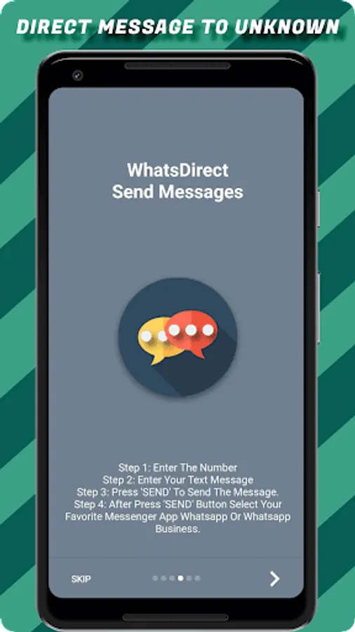 - Whatsdirect makes use of an official public API that can be used through your favorite Messaging application