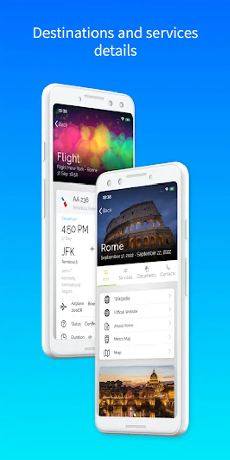 - Contacts: addresses, phone numbers, emails and main contacts of the services you booked
