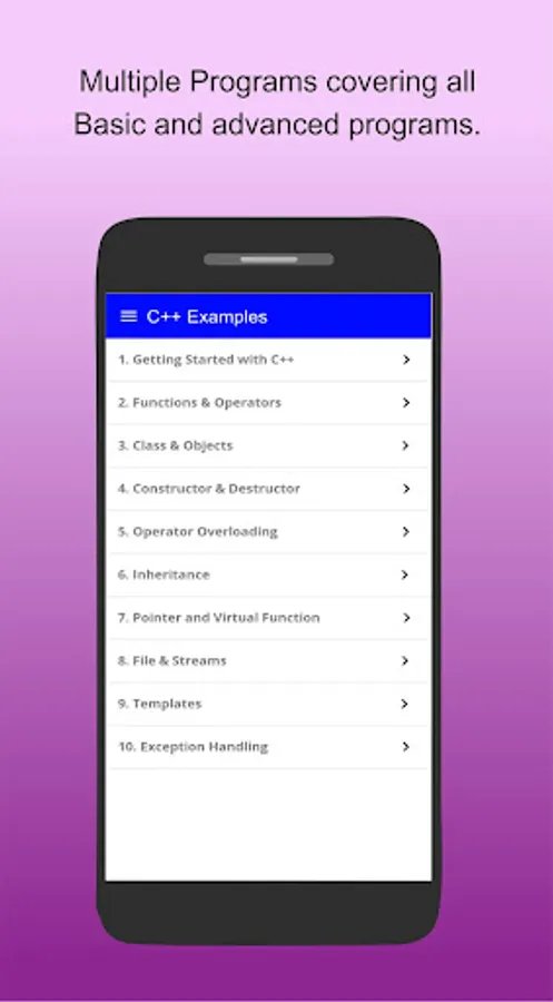 C++ Examples is useful app for all C++ and OOPS Concepts, Optimizing C++,C++ Programs . It is very easy for Beginners and Students.