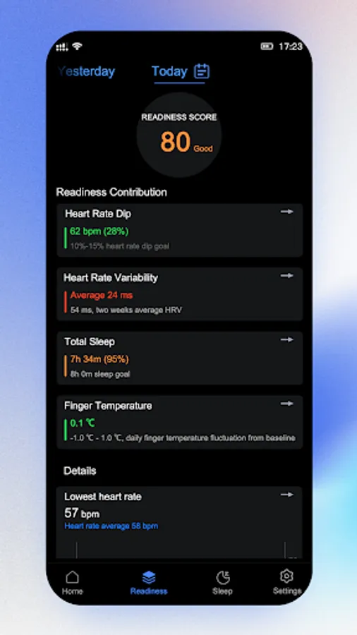 Get a clear picture of your recovery by following changes and trends in your nighttime resting heart rate and heart rate variability.