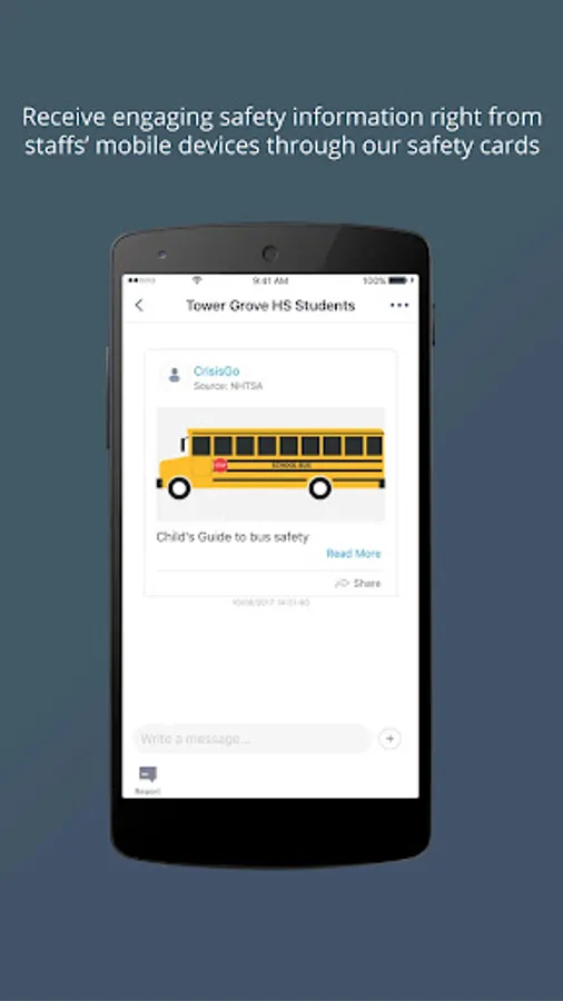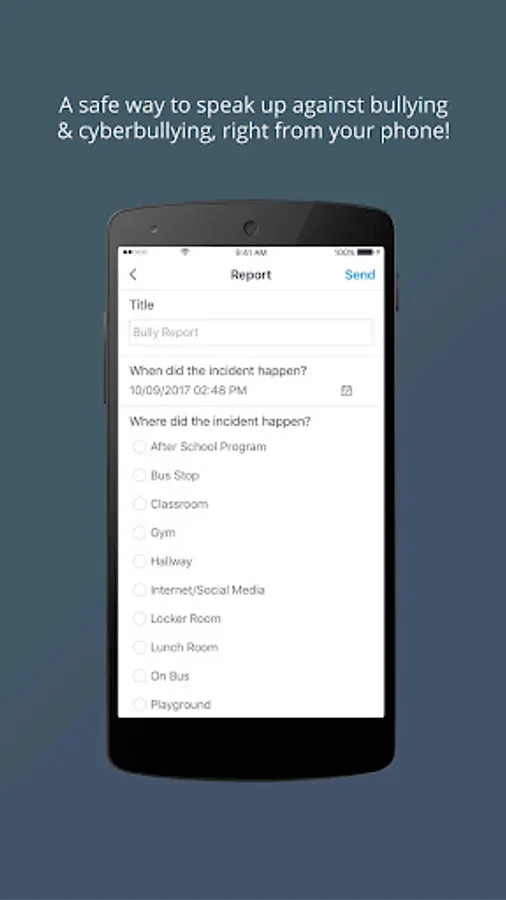 The Safe2SpeakUP app is the student companion to CrisisGo Bully & Tips. Using Safe2SpeakUP, students can report bullying for themselves or their friends, as well as other tips or incidents as defined by their school. They can message with groups that are permissioned to them by their school districts, or with the school's safety team in charge of bullying. Additional features such as a panic button can also be turned on by the school. All activities are recorded for reporting purposes, and when selected, anonymity is ALWAYS preserved. Feel safe to speak up, and let's unite against bullying!