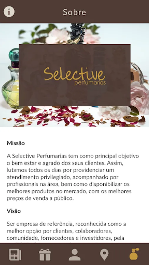 Selective Perfumarias has as main objective the well-being and pleasure of its clients. Thus, we strive every day to provide a privileged service, accompanied by professionals in the area, as well as providing the best products on the market, with the best prices for sale to the public.