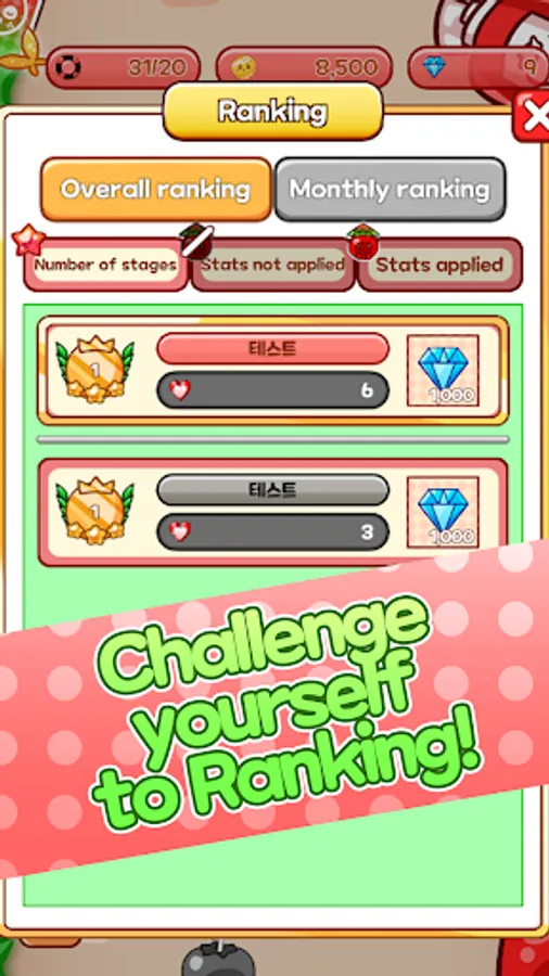 - The ranking will be initialized every month and the ranking users will be rewarded.