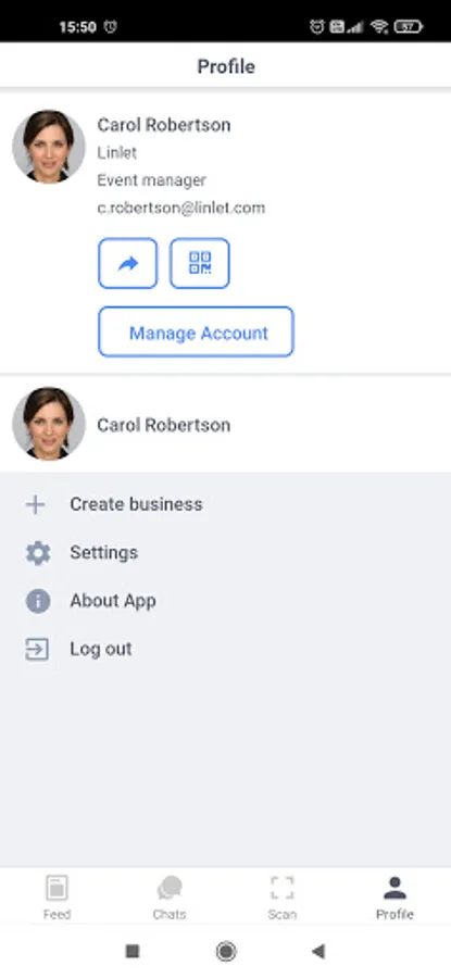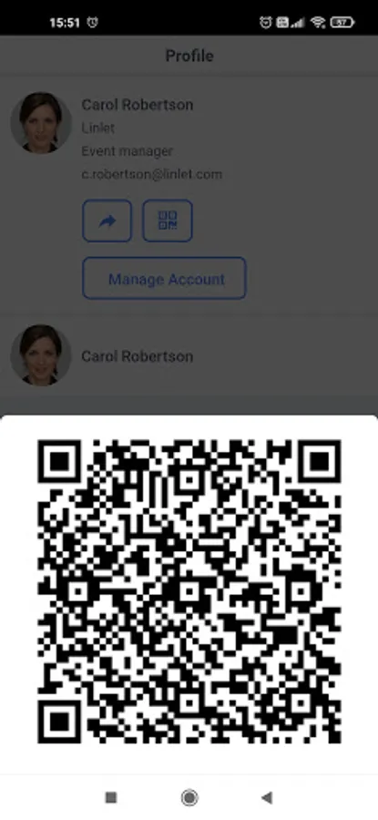 QR code: Each profile comes with a personal QR code on your virtual card for quick contact sharing.