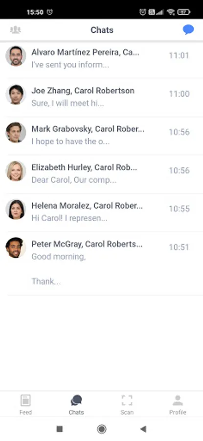 Feed: Post important updates and news, read what your contacts are sharing on their feeds.
