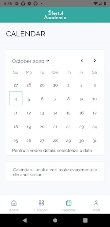 The Academic Quarter application gives you the opportunity to follow the university calendar, which will help you structure your time much more efficiently. You will be notified, depending on the time of year, when the session starts, when are the semester holidays or days off, but also when various events or projects of interest in Cluj-Napoca will take place.