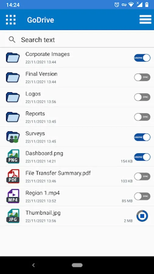 With GoDrive you can preview or download personal or shared files from your GoDrive account to your Android device. All downloaded files and folders are automatically updated to the most current version on the corporate servers every time you connect. Edit files by sending them to apps on your device (changes are not saved back to the GoDrive app or server). This app requires that GoAnywhere MFT is installed and licensed on your back office server.