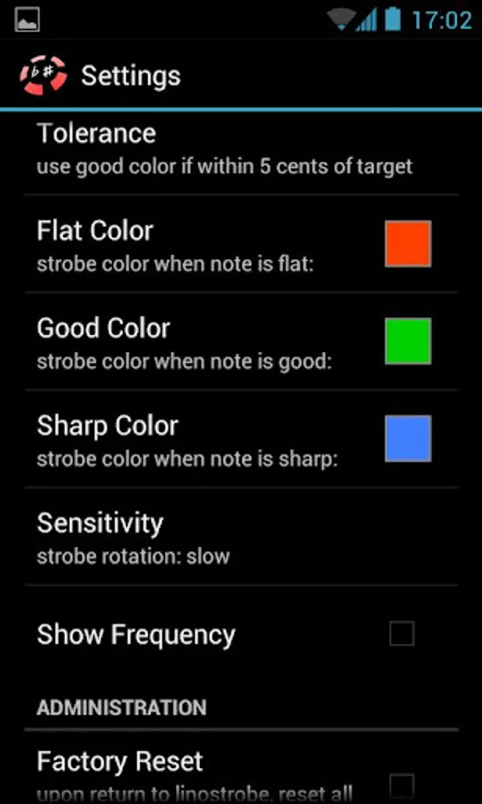 Tune your guitar, uke, violin, … in fact any musical instrument with the speed, accuracy and comfort of true strobe tuning! Simply sound the note to be tuned; it will instantly be recognised and displayed prominently. The strobe ring around it shows through its rotation and color whether you're flat, sharp, or in tune.