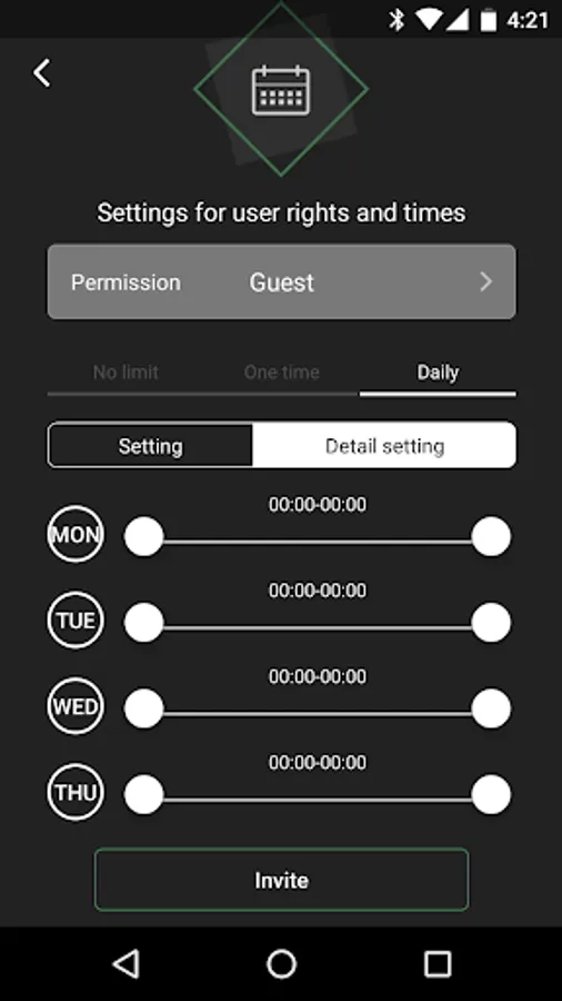 By entering the telephone number of your friends on the “invitation” screen, you can transfer opening rights to other people. The opening rights can be set to specific time slots.
