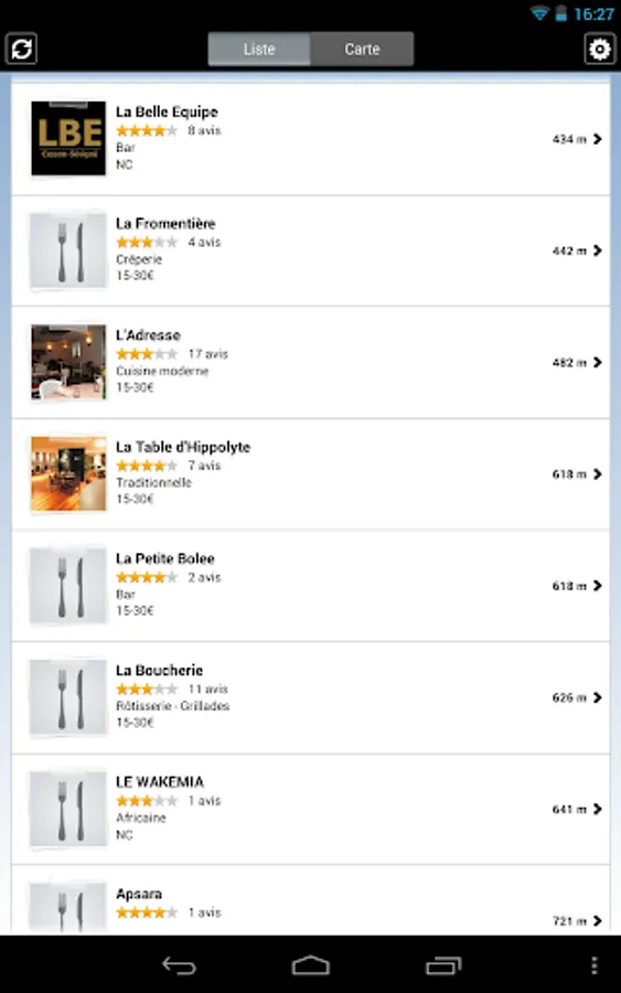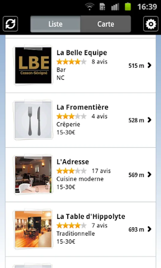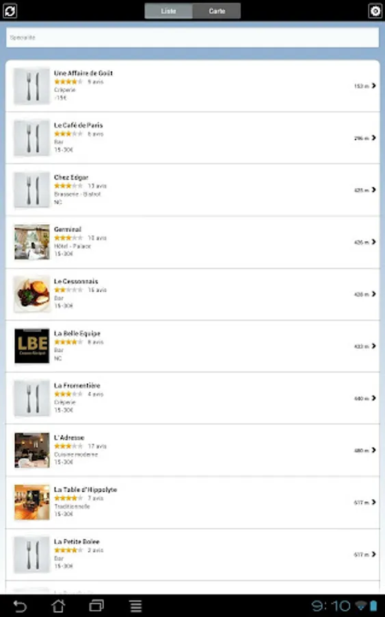 - A search by category, name or city, to see a gesture where the best Japanese restaurants are located, pubs, pizzerias ... near or at the other end of France.