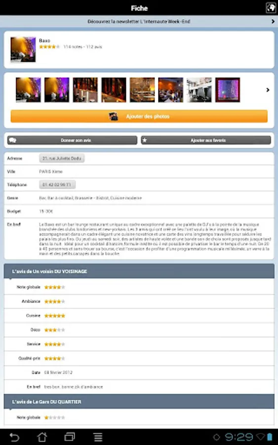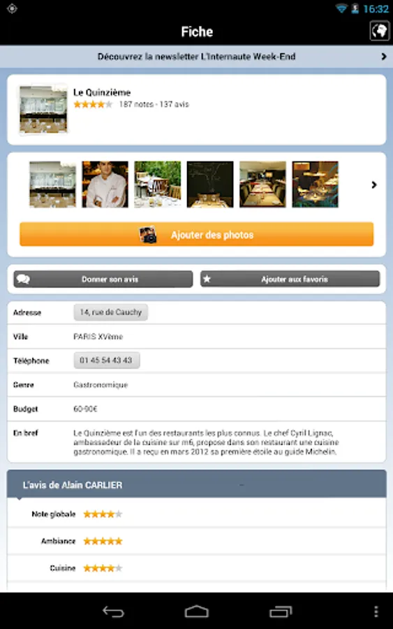 - The ability to review as soon as your meal is finished: kitchen, decor, atmosphere, service, price ... Make your views, and benefit from that of others.