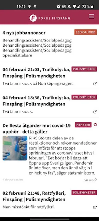 In the app you will find local news, offers, weather, community information, traffic news, available housing and events.