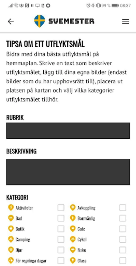 An app where you can get tips and hints about excursion destinations in Sweden. For those of you who are at Svemester in Sweden simply.
