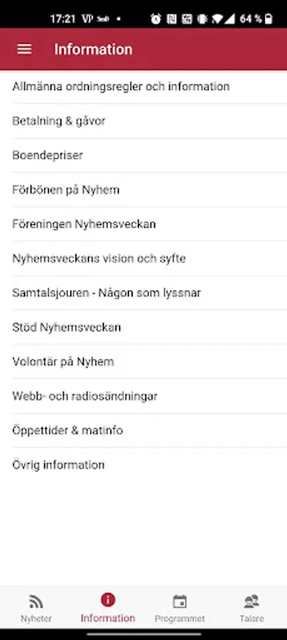 App for Nyhemsveckan 2022. Here you see the program, information about the speakers and other information that can be useful for you who visit the conference.