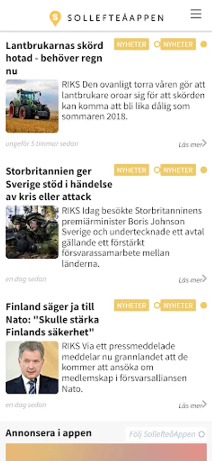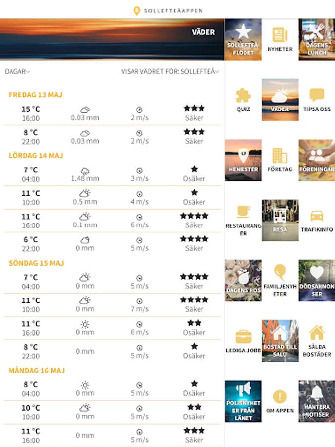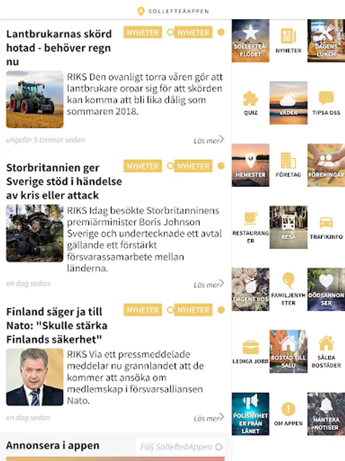 The Sollefteå app is an app where we have gathered everything that has to do with Sollefteå in one and the same app. Some of the features that are available are local news, offers, today's lunch, homes sold, vacancies and local weather.