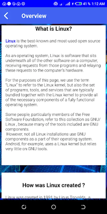This app is for every one who want learn linux,distros, commands, and more: